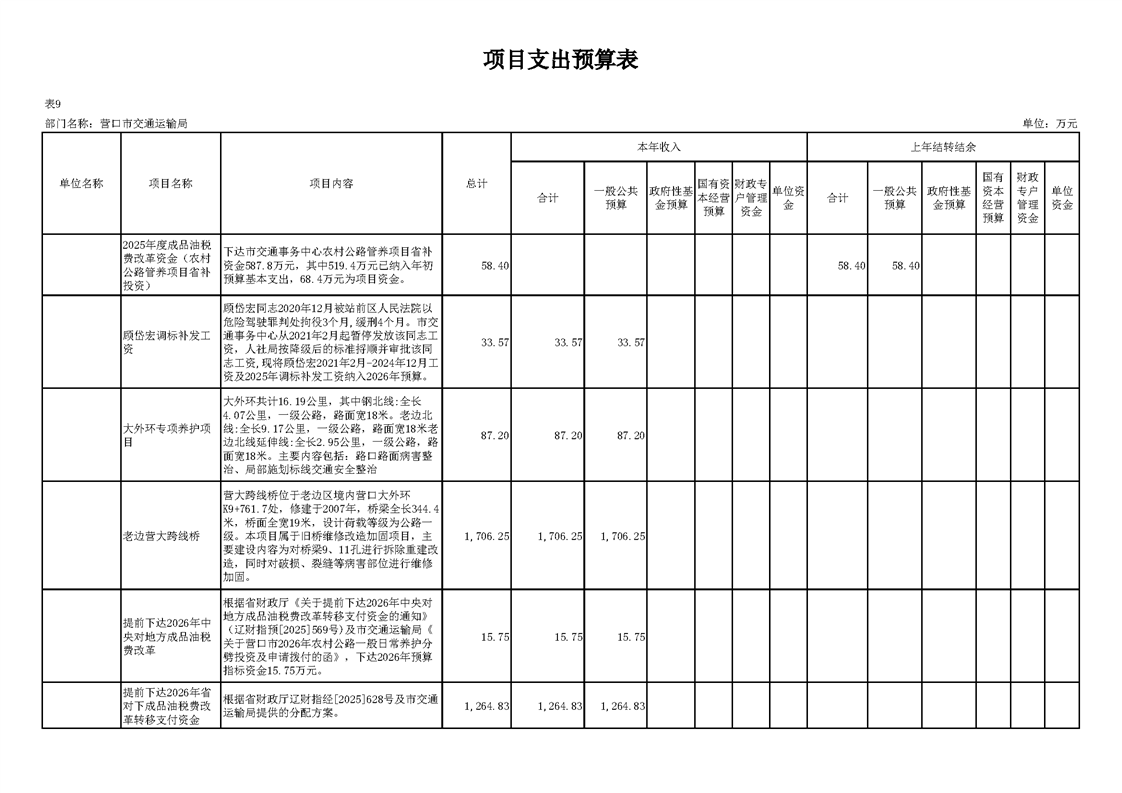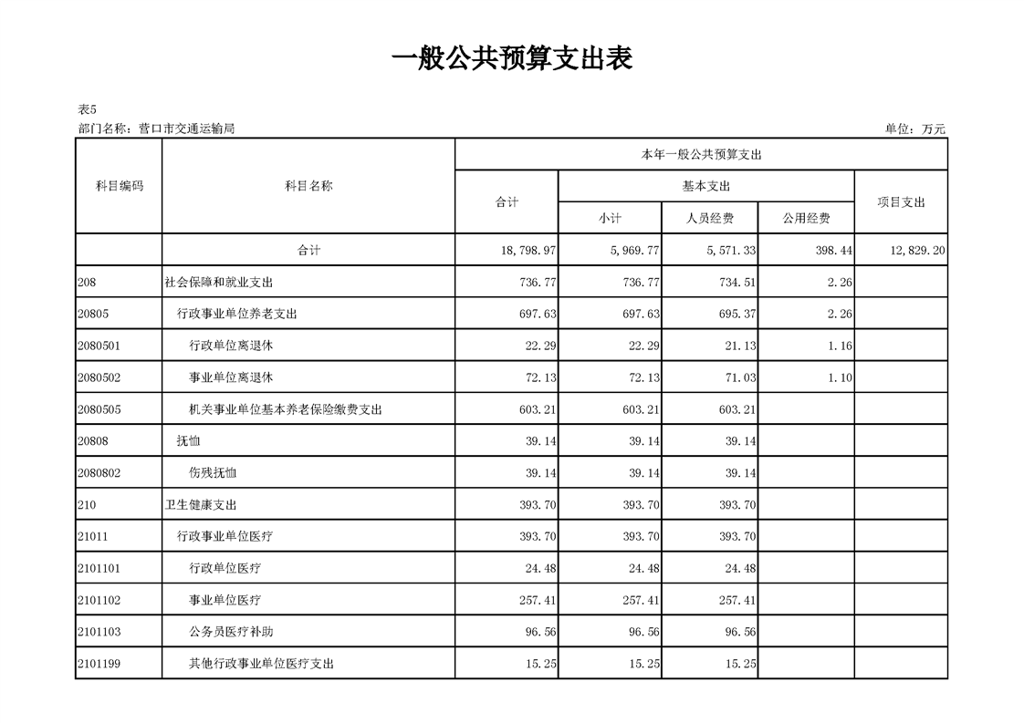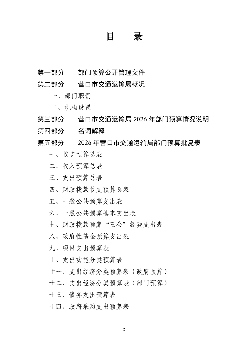 营口市交通运输局2026年度部门预算