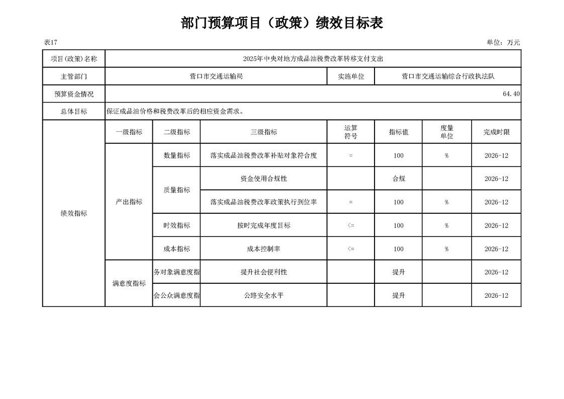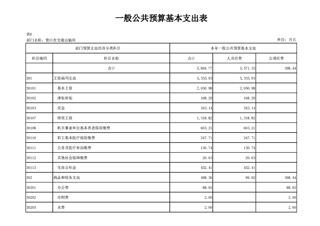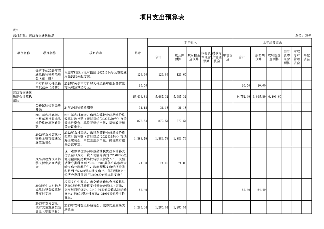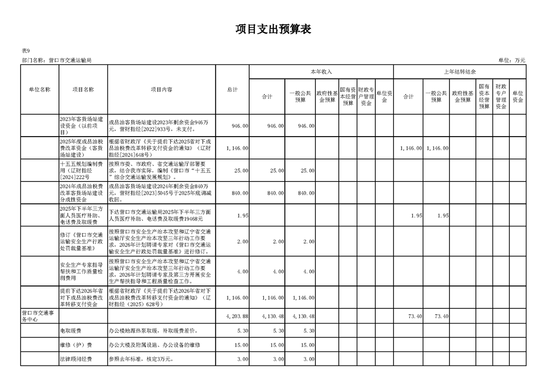 营口市交通运输局2026年度部门预算