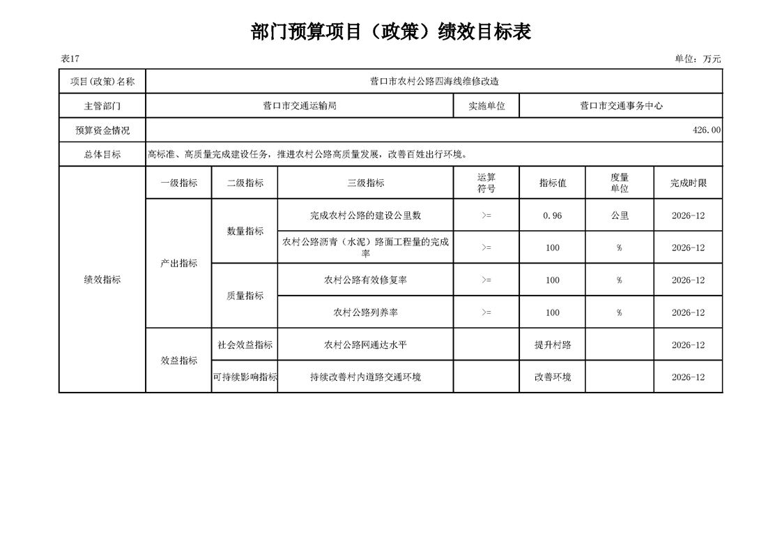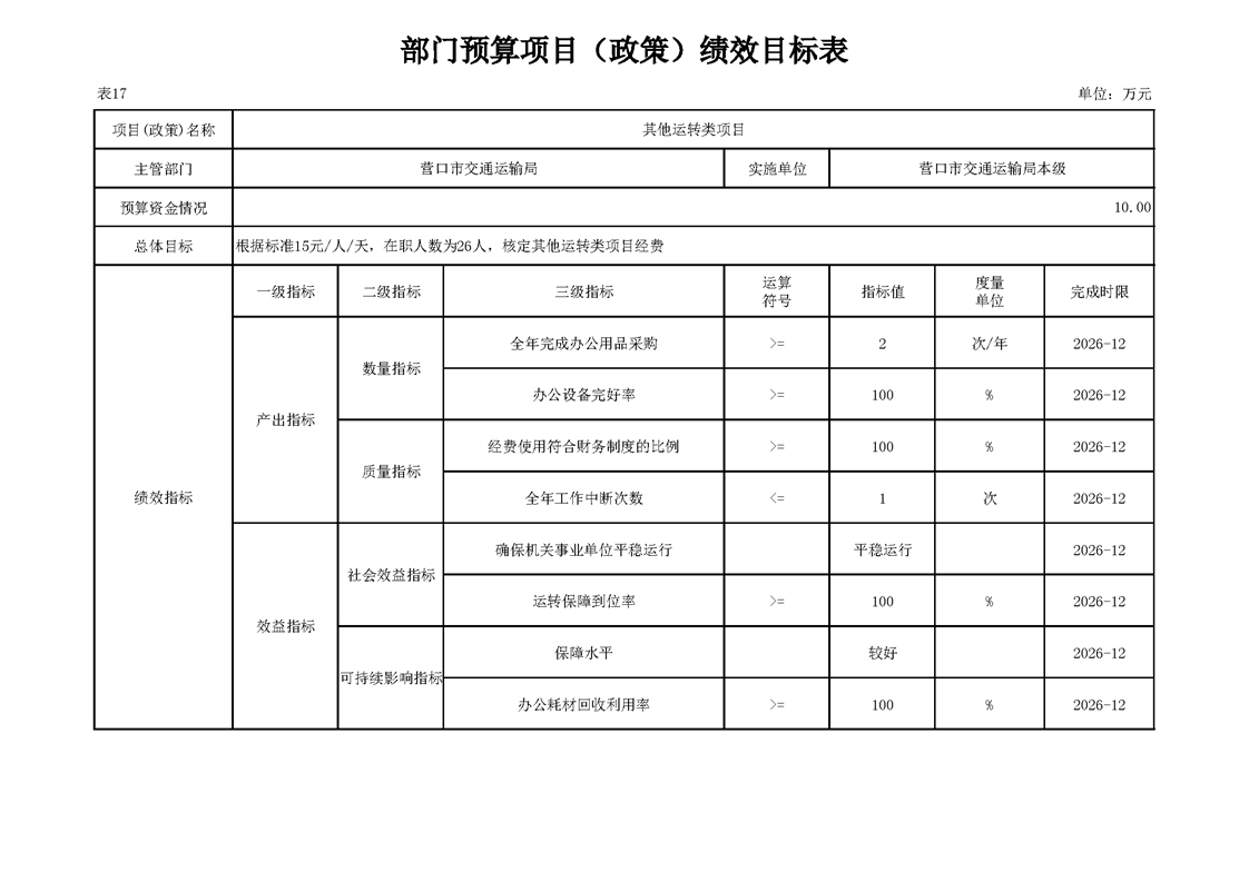 营口市交通运输局2026年度部门预算-凯发网址